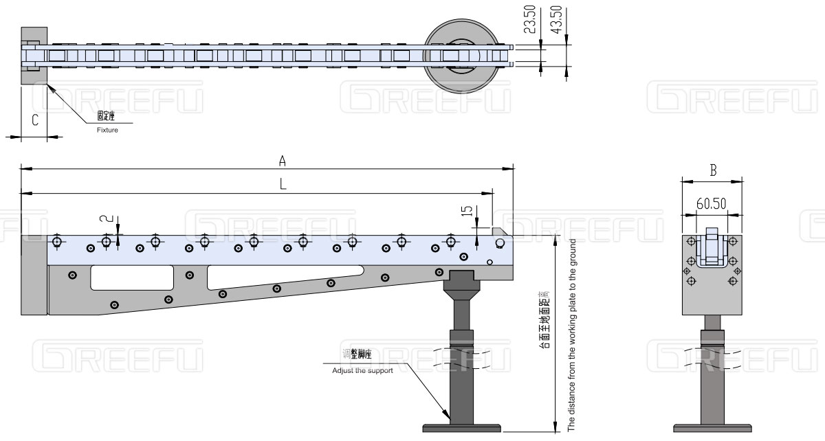 1:移模臂收納方式當移模臂引出距離≥1000mm時,需安裝支座