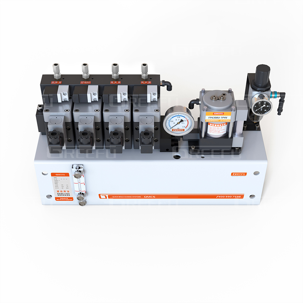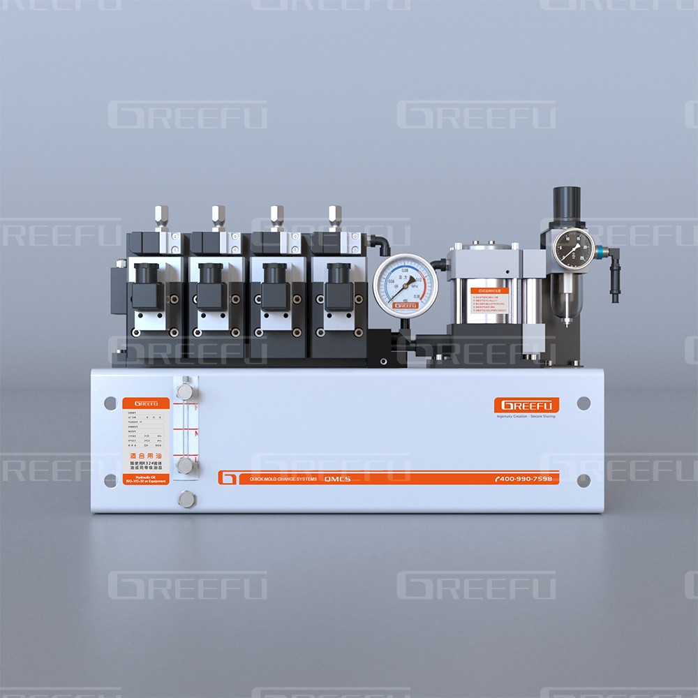 應(yīng)用實例:與2回路的氣控閥組合使用,能分別控制夾模器和模具提升裝置舉模器。